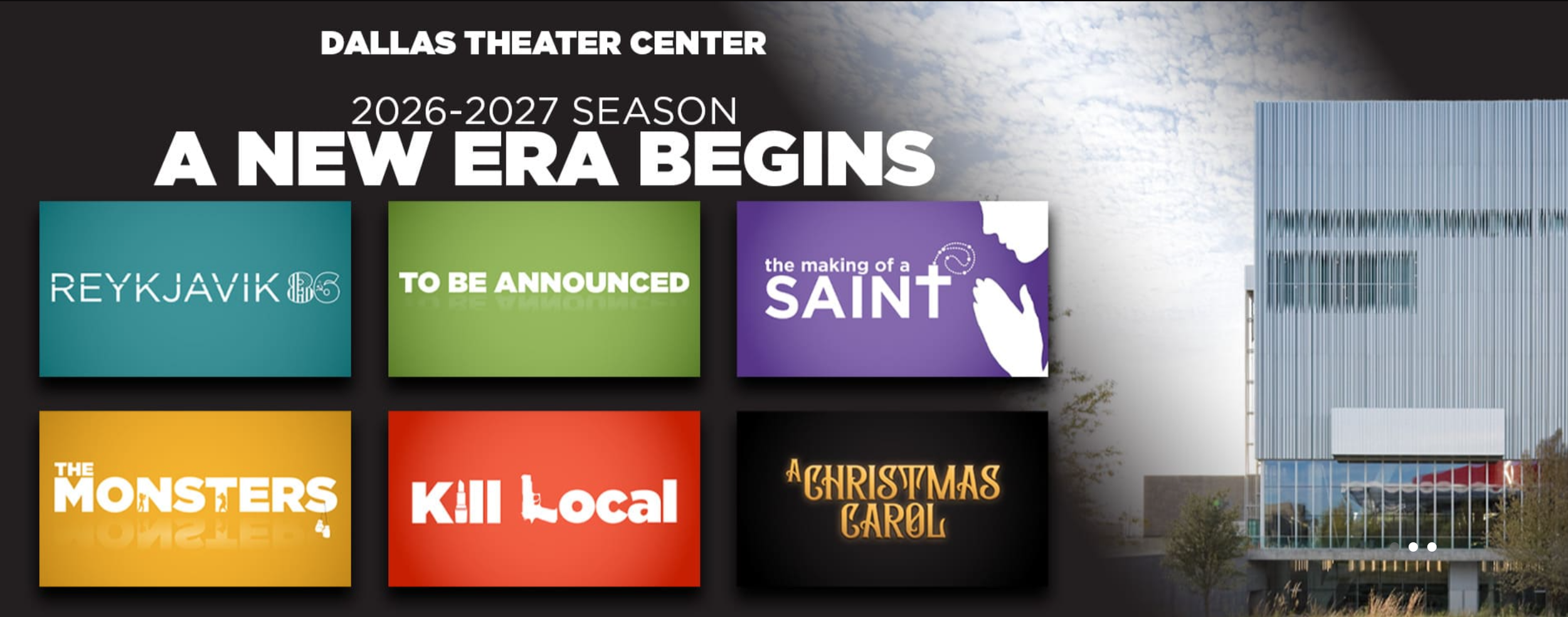 Dallas Theater Center announced titles for the 2026-27 season, which is the inaugural season of incoming Enloe/Rose Artistic Director, Jaime Castañeda. This season marks a bold, renewed commitment to new work at Dallas Theater Center, and includes world premieres of Cold War thriller Reykjavik86 by Gabe McKinley, dark comedy musical Kill Local with book by Mat Smart and music and lyrics by Liza Anne, and a theatrical exploration of faith and family, The Making of a Saint by KJ Sanchez. These three world premieres will be joined by the regional premiere of The Monsters by Ngozi Anyanwu and a fifth production to be announced June 1. Additionally, DTC will present its annual holiday production of A Christmas Carol. Productions will take place at the Dee and Charles Wyly Theatre inside the AT&T Performing Arts Center and the Kalita Humphreys Theater. Subscriptions for the 2026-27 season are available now. To reserve the best seats at the best prices, subscriptions can be purchased online at DallasTheaterCenter.org or by calling the DTC Box Office at 214-522-8499.