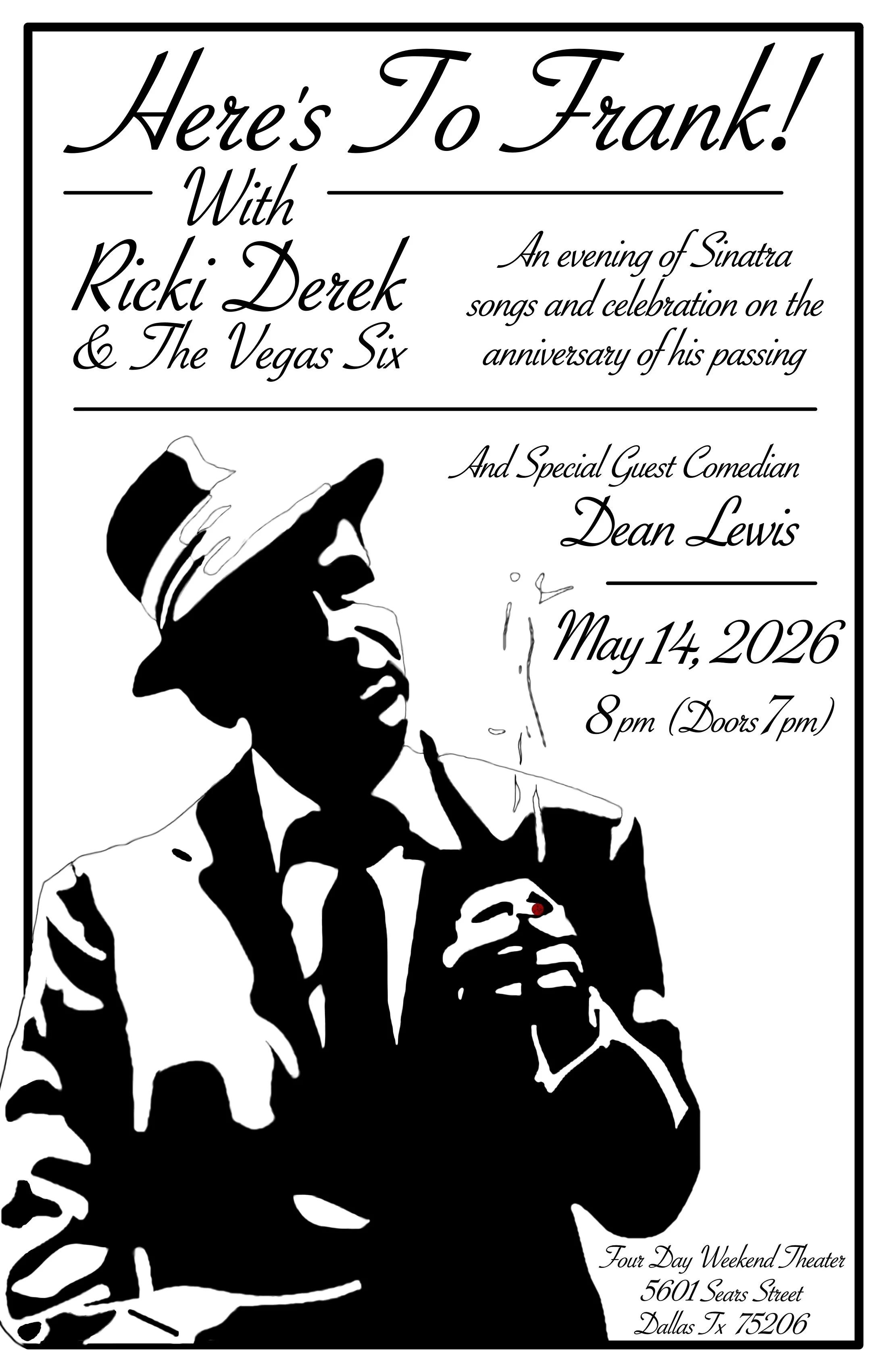 Join Ricki Derek and the Vegas Six on Thursday, May 14 for an unforgettable evening toasting Frank Sinatra on the anniversary of his passing at the Four Day Weekend Theater. A showman in the classic tradition, Ricki channels the spirit of the Rat Pack era drawing on the influences of Sinatra, Dean Martin, Tony Bennett, Sammy Davis Jr., and more to deliver the kind of full-throttle live experience that made those legends immortal. The night carries extra meaning as it also marks the anniversary of Ricki's very first performance way back in 1998. Special guest comedian Dean Lewis rounds out the bill.