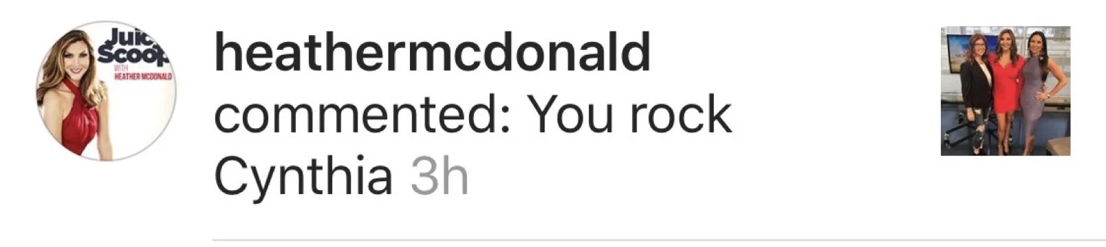 When comedian Heather McDonald came through Dallas on her national Juicy Scoop tour, she worked with Gangway to help create media buzz for her show by in 2017, which included appearances on Good Morning Texas and Good Day on FOX. “You rock Cynthia” she tweeted afterwards. “Thank you for everything.”